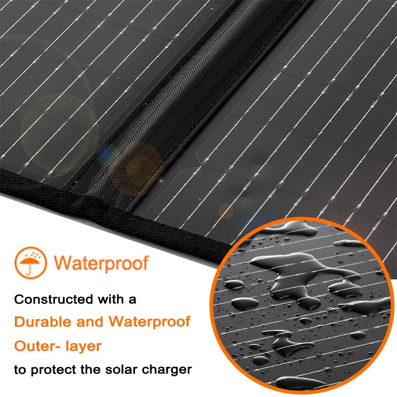 2) Magas konverziós hatékonyság: 200 W-os hordozható, összecsukható napelemes takaró a napenergia akár 21%-át is átalakítja, végtelen áramellátást biztosítva a laptopnak és a táblagépnek közvetlen napfényben, és bárhol töltheti eszközeit tiszta energiával.