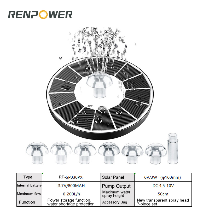 Napenergia kerti miniatűr 1,5 W DC szökőkút szivattyú napenergia miniatűr táj szökőkút medence dekorációs szivattyúA Solar szökőkút egy tájkút -eszköz, amely napenergiát használ a vízszivattyú vezetésére a víz szivattyúzásához. Ez a termék nagy hatékonyságú napelemeket és új kefe nélküli vízszivattyút használ, amelynek előnyei vannak a gyors indítás, a nagy hatékonyság és az erős stabilitás. Ezenkívül a termék nem igényel külső tápegységet. Nemcsak könnyű telepíteni és működtetni, hanem biztonságos, megbízható, energiatakarékos és környezetbarát is. A terméket széles körben használják olyan helyeken, mint a medence szökőkutak, a szikladarabok és a haltartály vízkeringése.